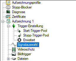 Um die Signalauswahl zu treffen, markieren Sie den Unterzweig Signalauswahl im Baum des Datenaufzeichnungsdialogs.