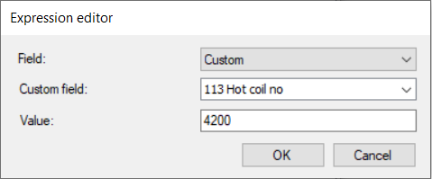 Click the button in order to add an expression or the button to edit an existing expression. In the Edit expression dialog, first select a field (e.g. event, comment, trigger, etc.) and then the value (e.g. event name, plaint text incoming/outgoing, etc.)
