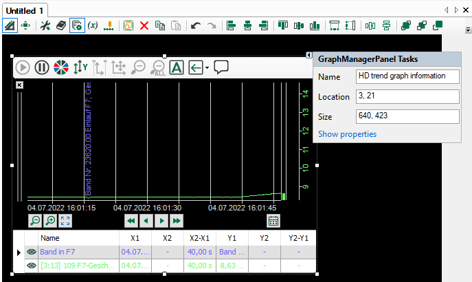 Event tables can be coupled with HD trend graphs so that when double-clicking on an event line the desired trend graph stops and is placed on the right position of the time or length axis.