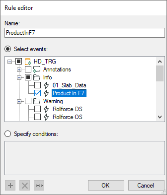 If you enable the"Specify conditions” option, then you can formulate check conditions in the field below that are executed when double clicking on an event row. In the auto-trigger mode, the conditions are checked constantly.