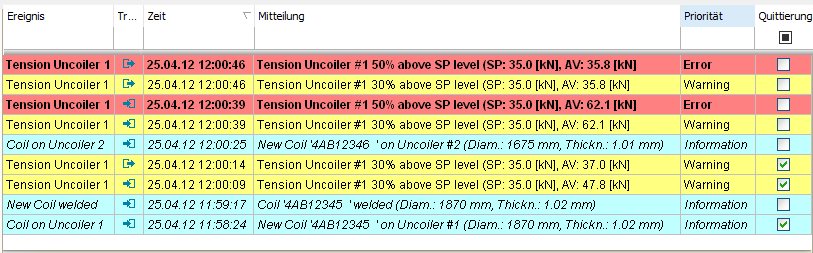 Im folgenden Beispiel wird bei allen Ereignisse der Hintergrund rot gefärbt und die Schrift in Fettdruck dargestellt. Die Ereignisse erfüllen die Voraussetzung Priorität = "Error".