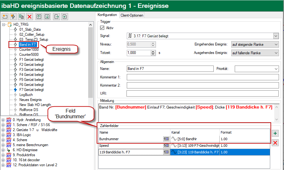 Beispiel für die Verwendung eines Feldes bei der Ereigniskonfiguration: