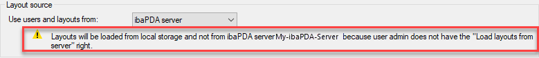 ibaPDA-Server: Layouts are available on the currently connected ibaPDA server and will be loaded from or saved to this server. Regarding the user rights, the user management of ibaPDA applies.
