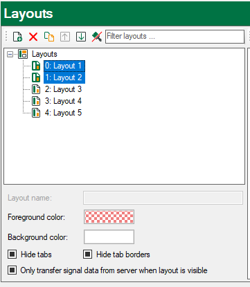 With the option Only transfer signal data from server when layout is visible you can reduce the data traffic between server and client. This setting refers to the measurement data (signals) in the views of a layout.