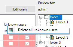 If an unknown user is not required, you simply can delete it in the Layout Manager. Use the context menu on the column header of the respective user for that. If there are several unknown, not required users make a right mouseclick on the common column header Unkown users and you can delete all unknown users at once.