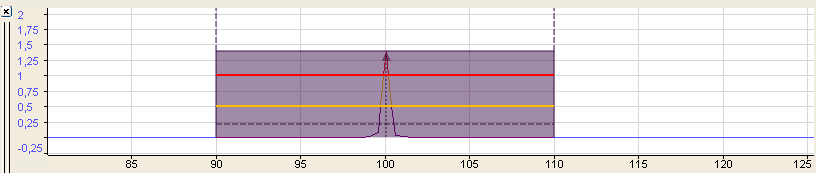 If the spectrum graph has the focus (after a mouse click on the header bar), the tool buttons for zooming out and restoring the manual scale relate to this graph and not to the main window. The same applies to the assigned function keys <F3>, <F4> and <F5>.