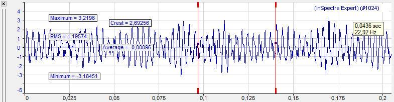 Sometimes, the crest factor and RMS value is not immediately visible in the graph, as it can be significantly higher or lower than the values of the signal curve. Change the scale of the value axis to see the crest factor. |