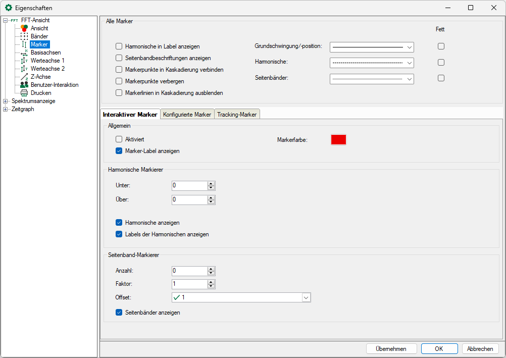 In den Einstellungen können Sie neben allgemeinen Eigenschaften wie Farbe und Label außerdem harmonische Marker und Seitenbandmarker konfigurieren.