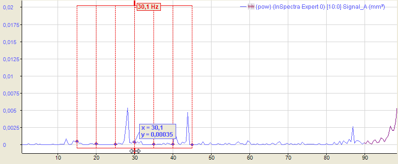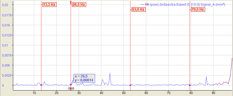 The above figure shows an interactive marker with 1 harmonic component below and 2 harmonic components above the marker frequency of 26.5 Hz.