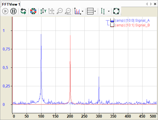 In the main window, the result of the FFT of the signal to be examined is shown in the frequency domain. The standard view for the main window is the individual spectrum.
