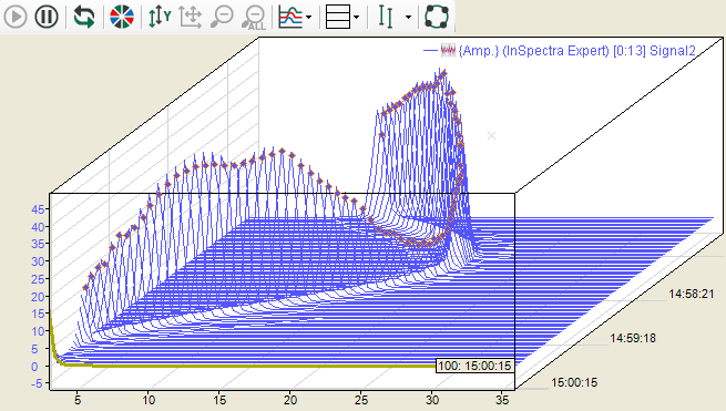 In the above figure, you can see the results of the last 100 calculations and it is clearly visible how the spectrum changed in the course of time.