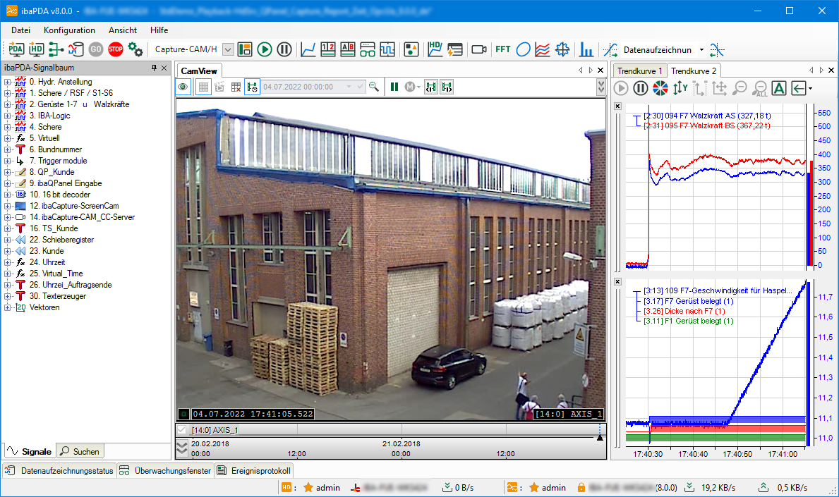 Das Tool, das zur Videoanzeige verwendet wird, ist ibaCapture-Player. In der Kameraansicht verfügen Sie über verschiedene Funktionen wie Zoomen oder Schwenken per Mausrad, Zeigen von aktuellen Bildern (live) oder Wiedergabe von Aufzeichnungen usw.