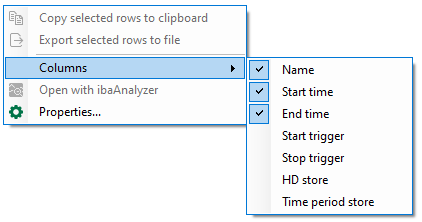 When the view is in pause mode you can select multiple time period rows. If you then click on Open with ibaAnalyzer in the context menu, all selected time periods are opened as separate files in ibaAnalyzer.