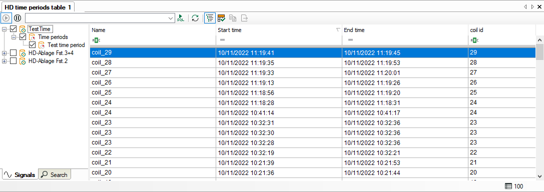 Open the tree by clicking the signal tree button in the toolbar and select there the time period store which should be displayed.