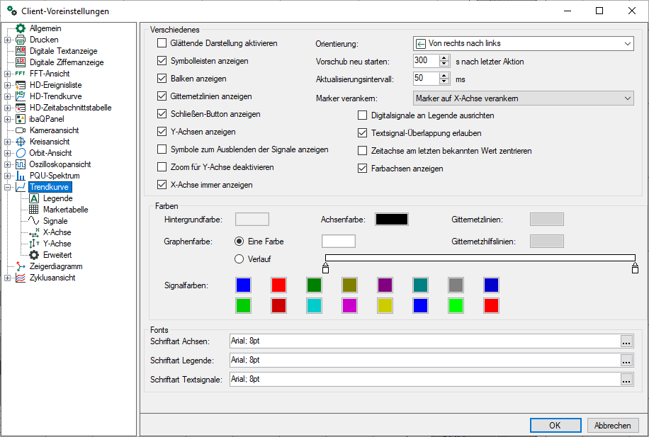 Für die Beschriftung der Achsen, Legende und Textsignale können hier die Schriftarten