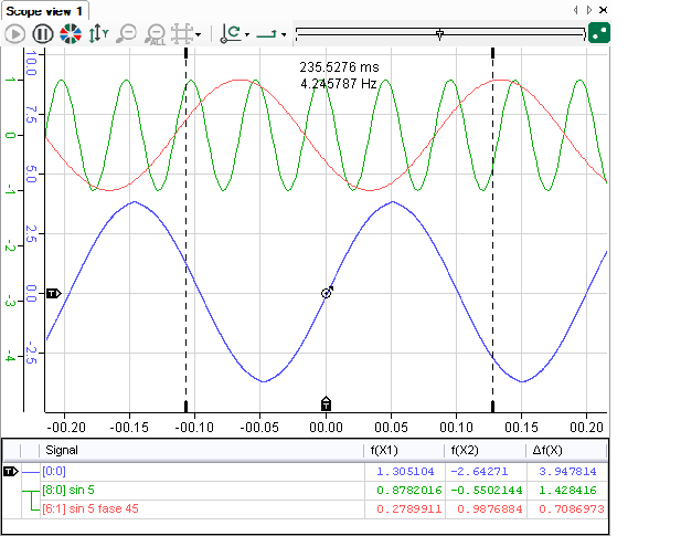The scope view is an oscilloscope included as a standard view in ibaPDA. Each view supports one base axis and multiple signals on multiple value axes.
