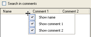 Besides the "Name" column in the result list, you can show or hide the columns for comments using the context menu.