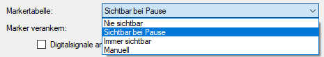 Standardmäßig ist die Signaltabelle im Live-Modus deaktiviert. Sie öffnet sich automatisch sobald die Signal-Anzeige in den Pause-Modus umschaltet.