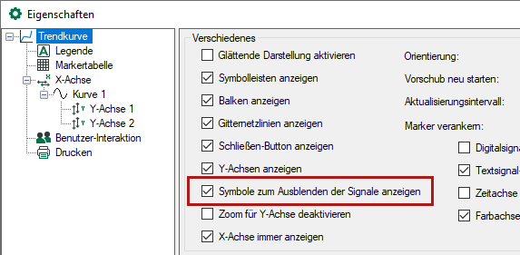 Mit einem rechten Mausklick auf den Signalnamen in der Legende können Sie im Kontextmenü ein Signal anzeigen oder verbergen.