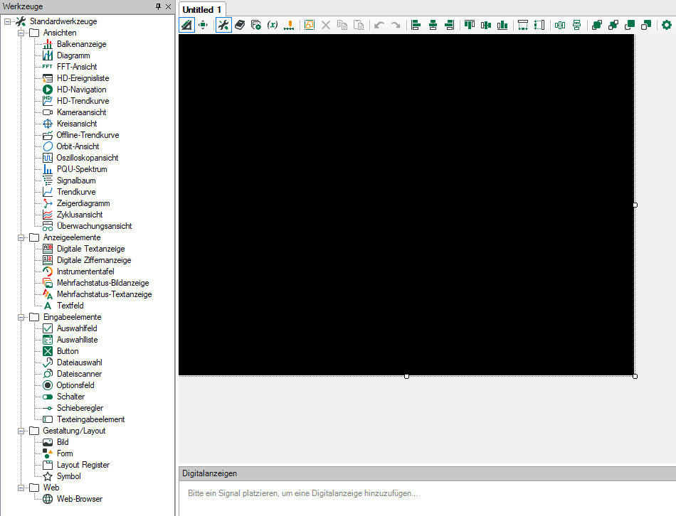 Danach können Sie die benötigten Anzeigeobjekte aus der Werkzeugkiste in das Panel ziehen und diese einrichten.