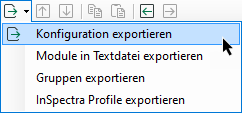 Die Exportfunktion dient zur Erzeugung einer Textdatei, die Module, Gruppen und Profile enthält. Wenn Sie profilbasierte Module konfiguriert haben (z. B. InSpectra-Module), dann werden auch deren Profile exportiert.