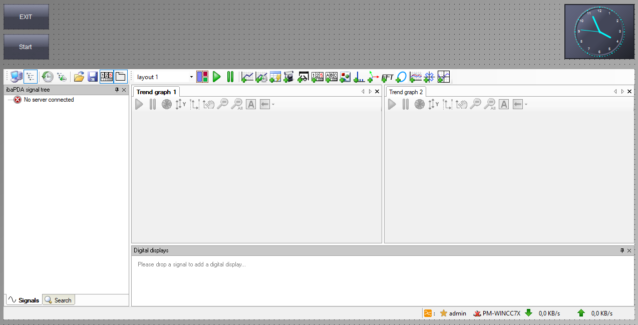 Das Ergebnis ist eine typische ibaPDA-Client-Oberfläche, die im Design-Modus ein anderes Aussehen haben kann als später im Runtime-Modus, weil es sich hier zunächst um einen Platzhalter handelt.