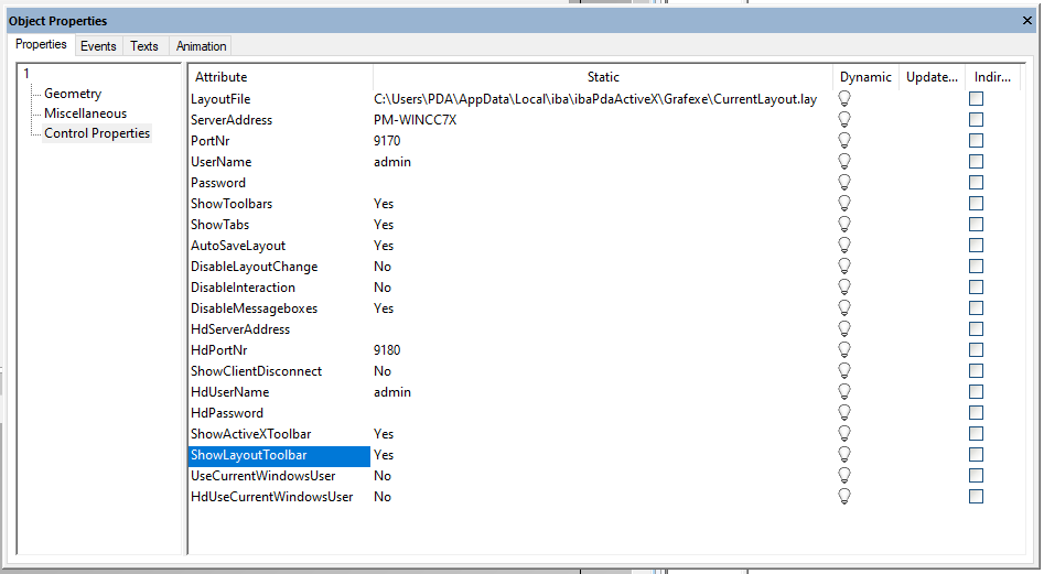 Das ibaPDA ActiveX Control besitzt einige Eigenschaften, die Sie konfigurieren können.