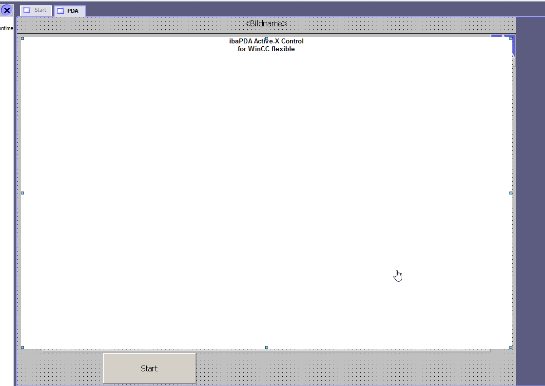 Now select the control ibaPdaActiveXForWinCCFlexCtrl in the "Tools" window under My Controls and insert a new instance into the image. To do this, drag a rectangular frame with your mouse.