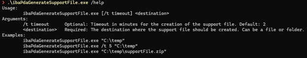 ibaPdaGenerateSupportFile.exe [/t timeout] <destination>