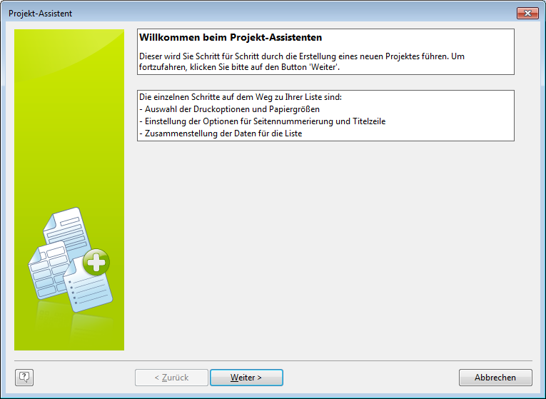 Der Projekt-Assistent dient zur einfachen und schnellen