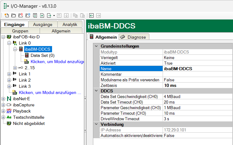 Im Register Allgemein nehmen Sie die Grundeinstellungen und Einstellungen für die DDCS-spezifischen Kanäle vor.