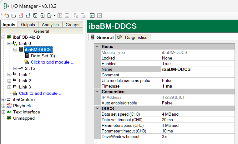 The IP address of the device in the FOB-D network is displayed here. Please refer to the description in the ibaFOB-D manual.