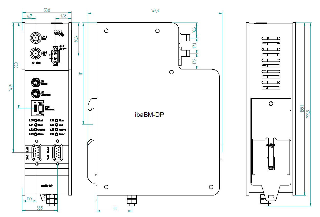 Maßblatt ibaBM-DP ab HW-Version B0 (Maße in mm)