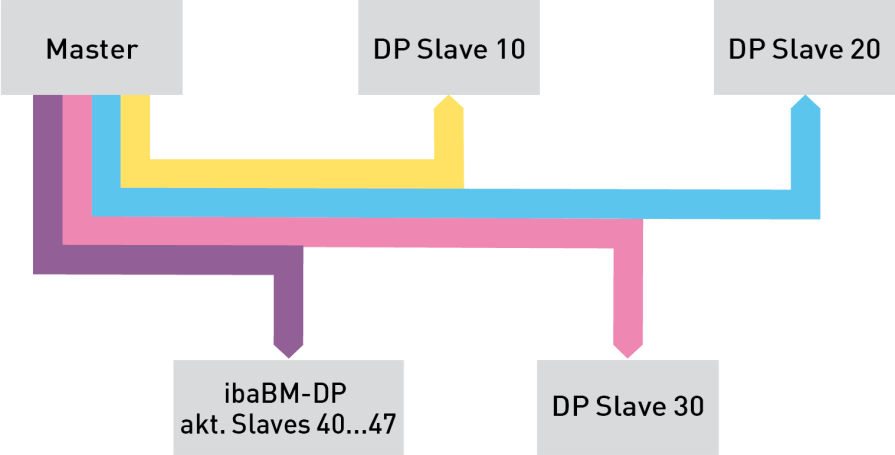 The PROFIBUS slaves that have been configured in the master, but are not physically present, are simulated on the device. It is not necessary to carry out a PROFIBUS configuration in ibaBM-DP, since the device evaluates the configuration telegrams from the master and creates the corresponding slave automatically.