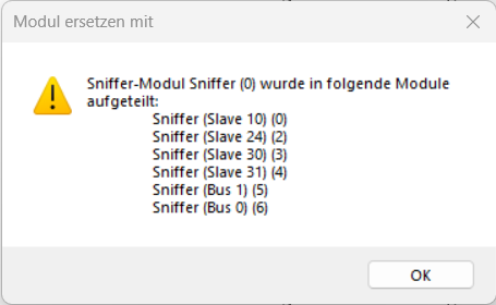 die aktiven Slaves im Modul "Sniffer" konfiguriert waren. Die Bezeichnung kann nachträglich