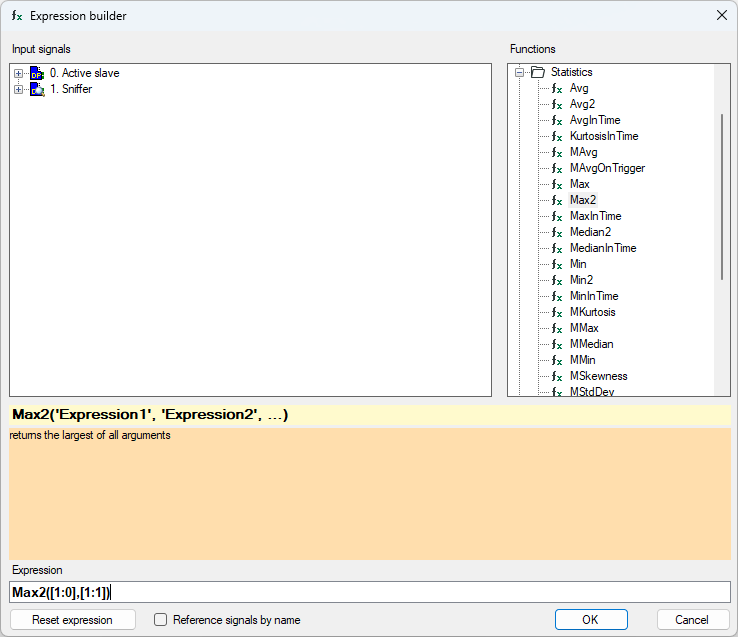 For more information about the function of the expression builder and the available functions, please refer to the ibaPDA manual. |