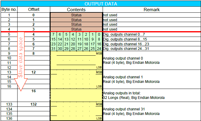 This mode is used to read up to 32 real values and 32 digital signals from the PROFIBUS (OUT 136 bytes).