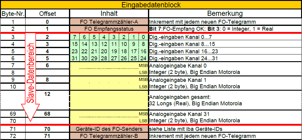 Dieser Modus dient zum Schreiben von bis zu 32 Integer-Werten und 32 Digitalsignalen am PROFIBUS (IN 72 Bytes/OUT 4 Bytes).