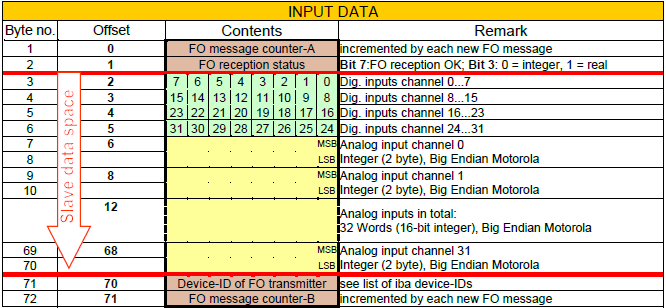 This mode is used to write up to 32 integer values and 32 digital signals to the PROFIBUS (IN 72 bytes/OUT 4 bytes).