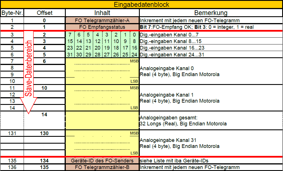 Dieser Modus dient zum Schreiben von bis zu 32 Real-Werten und 32 Digitalsignalen am PROFIBUS (IN 136 Bytes/OUT 4 Bytes).