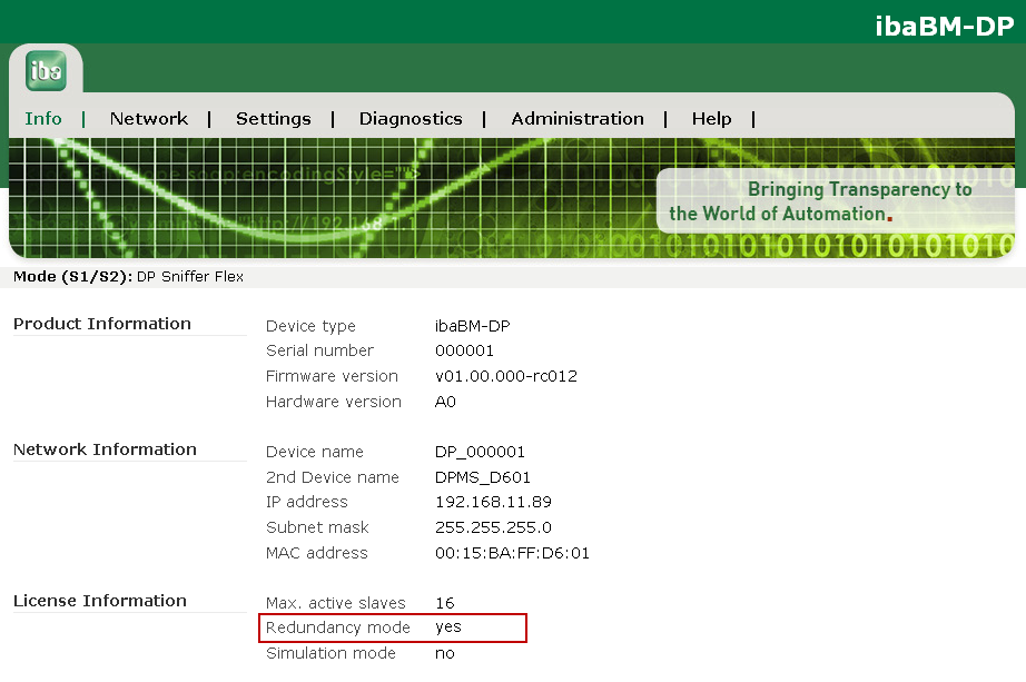 ibaBM-DP can either be operated in normal mode or in redundancy mode. A combination of these modes is not possible. |