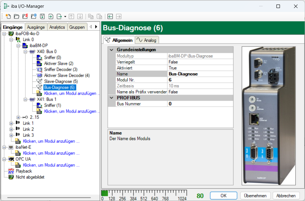 Der Bus auf dem ibaBM-DP, der mit diesem Modul überwacht wird.