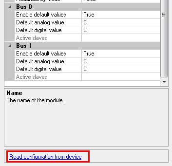 If the default values are enabled (see option mentioned above), all analog signals of a disconnected slave are set to this default analog value.