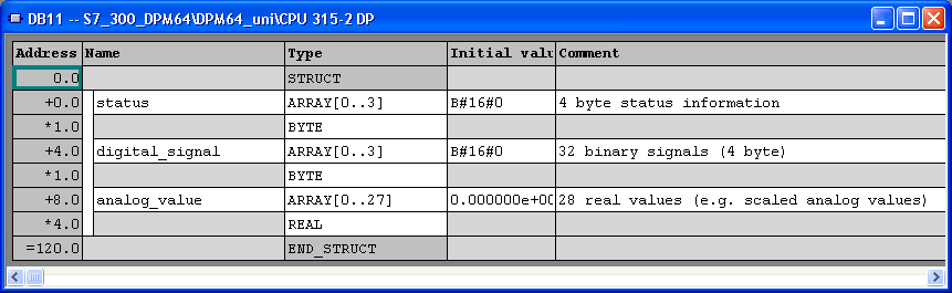 Example for transfer of 32 bytes of consistent data from S7 PLC (DB11) to ibaBM-DP with SFC15: