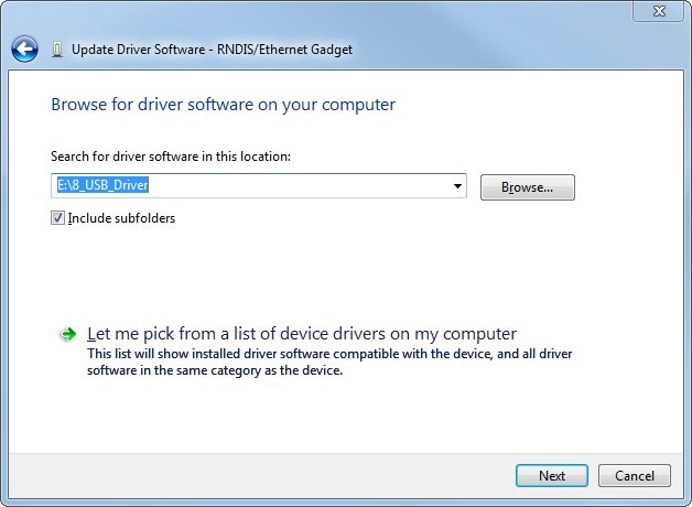 In the following dialog, select Browse my computer for driver software and tap <Next>.
