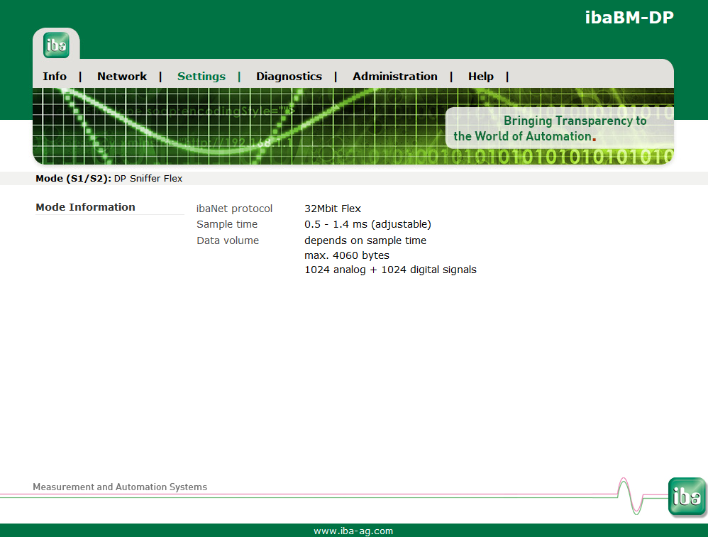 This Settings page can only be accessed by the "admin" user. Depending on the selected mode, current device settings are displayed on this page.