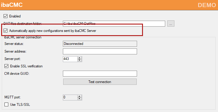 Enabled: Enables the connection to ibaCMC