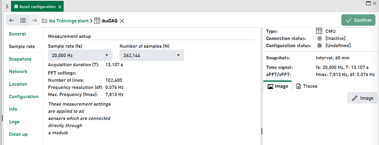 The Sample rate tab has two drop down fields to set up the following: