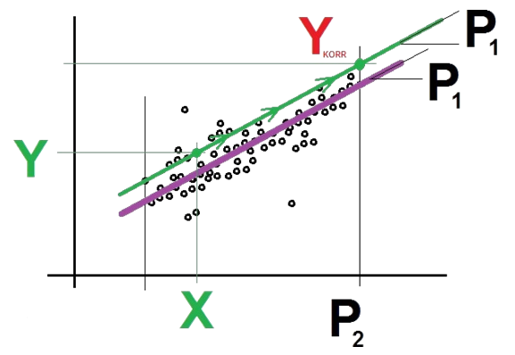 Basierend auf diesen beiden Werten, berechnet man nun eine Linie, die am besten die Datenpunkte repräsentiert.