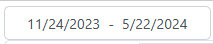 Current start and end time for the values to display on the tiles. The time range is set when creating the dashboard and applies to all tiles in the dashboard. The field provides a date selection function. Open the date selection by clicking on the field and select a different date or a different period. |